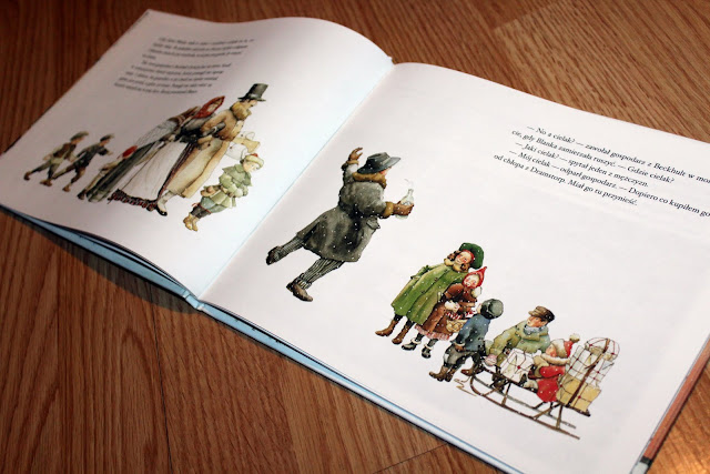 Jak Johan uratował cielaka, to znakomita książka na zimowy dzień. Zatopić się w Szwedzkiej zimie z prawdziwego zdarzenia, tak pod wpływem pięknych ilustracji Marit Törnqvist, jak i bajkowych opisów to rzecz niecodzienna. To niesamowita podróż w czasie do dni kiedy bieda zaglądała ludziom w oczy a jednak byli szczęśliwi, do czasów kiedy do szkoły dzieci brnęły przez półmetrowe zaspy, do czasów kiedy auta były czystą abstrakcją. Johan był członkiem ubogiej Smalandzkiej rodziny, nie przelewało im się nigdy, ale nadszedł dzień kiedy Johan stwierdził, że Bóg o nich zapomniał. Jedyna krowa, żywicielka rodziny, tak kochana przez chłopca połknęła gwóźdź i padła. Żal, rozgoryczenie zupełna bezradność, brak pieniędzy na nową krowę i to czego Johan do tej pory nigdy, przenigdy nie widział, łzy jego mamy. To wszystko przeważyło szalę rozgoryczenia i złości. Chłopczyk nie mógł pojąć tak wielkiej niesprawiedliwości i nic poradzić na ten ból który rozlewał się po jego małym niewinnym serduszku.